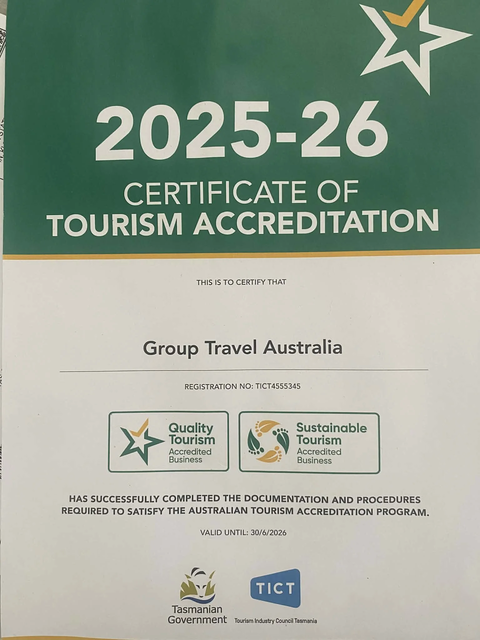 Quality Accredited Business We pride ourselves on providing excellent customer service and ensuring that your travel experience is of the highest possible quality. As a result, we were awarded tourism accreditation in 2021 through the Quality Tourism Framework, making us a recognised Quality Tourism Business accredited by the Australian Tourism Industry Council (ATIC) and continued tourism accreditation for 2026